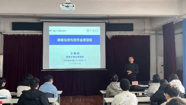 2025年11月27日上午,应我校科技处、材料电子与储能学院和先进材料研究中心邀请,郑州大学化学学院教授,博士生导师,国家级青年人才王朝阳教授做客我校建校70周年系列学术活动,在2号实验楼543会议室作了题为“碳硼烷修饰的币金属团簇”的专题学术报告。报告会由材料电子与储能学院副院长黄超主持,材料电子与储能学院、先进材料研究中心等院部的相关学科教师和研究生70余人参加了报告会。