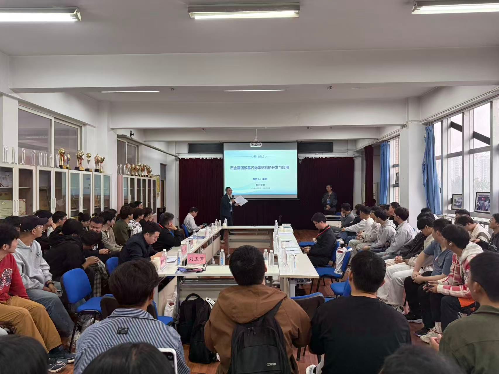值我校建校70周年之际,2025年9月27日上午,应我校科技处、材料电子与储能学院和先进材料研究中心邀请,河南师范大学二级教授、博士生导师、中原学者、国务院政府特殊津贴获得者、北京理工大学兼职教授、河南师范大学学术委员会副主任刘玉芳教授和郑州大学博士生导师、国家级青年科技人才、郑州大学化学国家级实验教学示范中心主任、中国化学会竞赛工作委员会委员、河南省化学会理事李恺教授在2号实验楼543会议室分别作了题为“材料光谱发射率高精度测量技术”、“币金属团簇基闪烁体材料的开发与应用”的专题学术报告。报告会由材料电子与储能学院院长、先进材料研究中心主任焦明立主持,材料电子与储能学院、先进材料研究中心、物理与光电工程学院、纺织服装产业研究院等院部的相关学科教师和研究生及航空港投资集团产业研究院、北京合众思壮科技股份有限公司、河南东微电子材料有限公司等企业代表近130人参加了报告会。