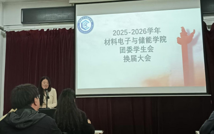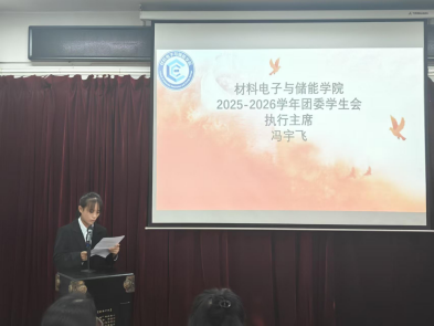10月14日下午,材料电子与储能学院2025—2026学年团委学生会换届大会在2号实验楼543会议室隆重举行。学院党委副书记熊瑛、团委书记张皖豫与团委学生会全体成员齐聚一堂,共同见证这一传承与启航的时刻。会议由办公室干事倪子森主持。